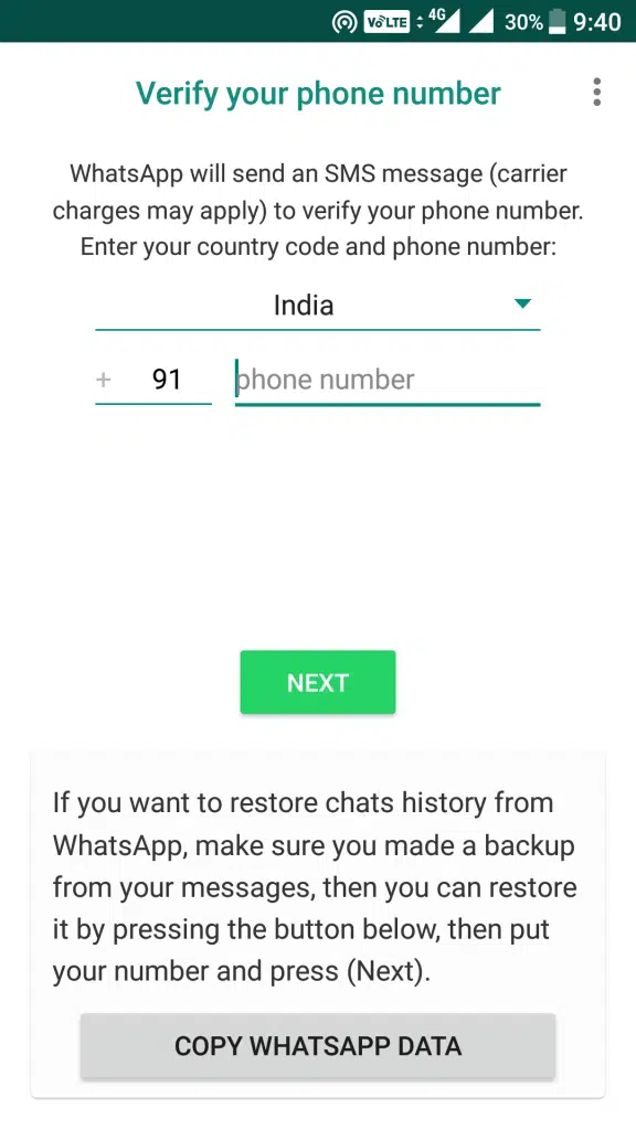 6. अब एप्प को ओपन करके उसमे अपना मोबाइल नंबर दर्ज करके ‘Next’ पर क्लिक करें।